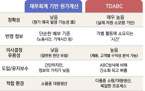 재무회계 원가계산 vs TDABC, 한눈에 비교하기